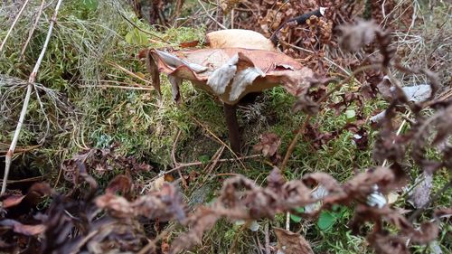 Der 1–12 cm breite Hut ist weiß-braun-rot gefärbt. Die Form ist meist trichterförmig.