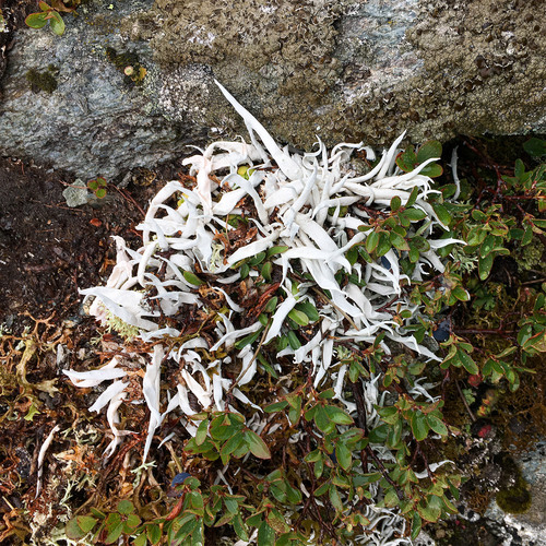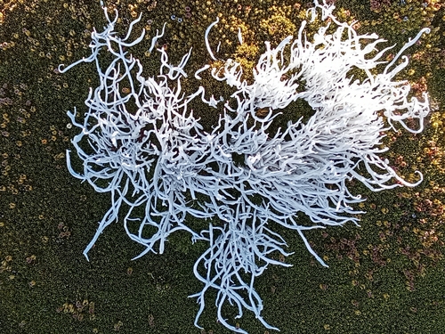 Der Totengebein (Thamnolia vermicularis) ist ein Pilz mit dem Speisewert ungenießbar. Die Hauptsaison erstreckt sich von Januar bis Dezember. Er wächst bevorzugt auf Boden.