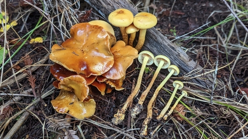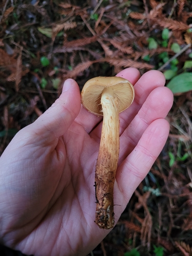Der Stiel ist gelb-orange-rot-braun. Besondere Merkmale: flocken, faserig, hohl, Ring, Wurzelbasis, genattert.