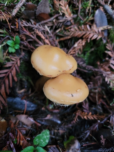 Der 2–7 cm breite Hut ist gelb-orange-braun gefärbt. Die Form ist meist andere, kegelförmig. Er ist hygrophan (Die Hutfarbe ändert sich bei Feuchtigkeit).