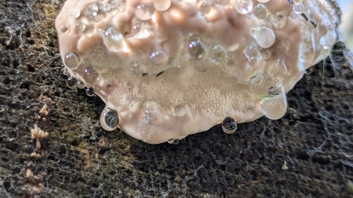 Die Unterseite zeigt Farben von grau/gelb/weiß/braun. Sie sind angewachsen.