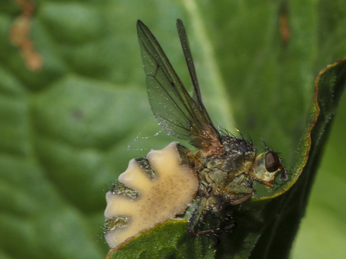 Der Fliegentöter (Entomophthora muscae) ist ein Pilz mit dem Speisewert ungenießbar. Die Hauptsaison erstreckt sich von März bis Dezember. Er wächst bevorzugt auf Boden, Holz, Wiese. Ein charakteristisches Merkmal ist seine Hygrophanität (Änderung der Hutfarbe bei Nässe).