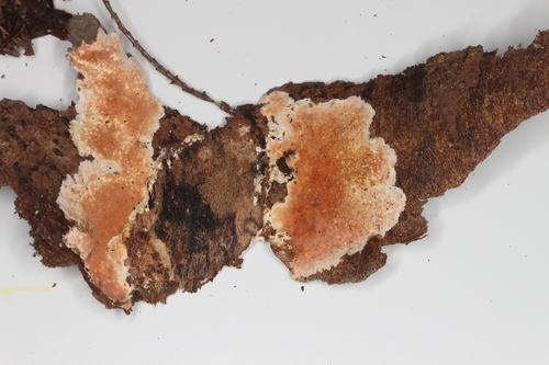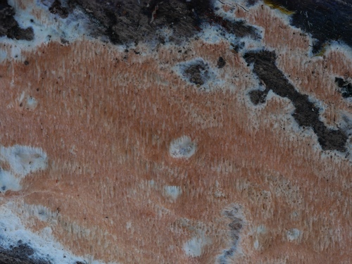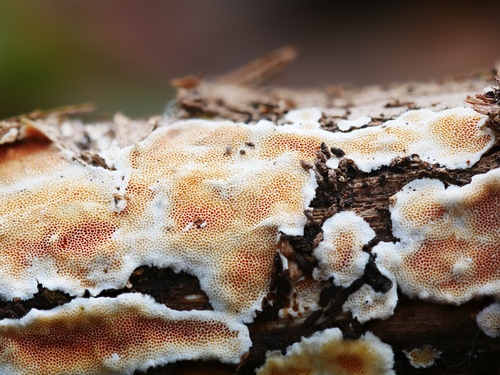 Der Schönfarbiger Porenschwamm (Steccherinum nitidum) ist ein Pilz mit dem Speisewert ungenießbar. Die Hauptsaison erstreckt sich von Januar bis Dezember. Er wächst bevorzugt auf Holz.