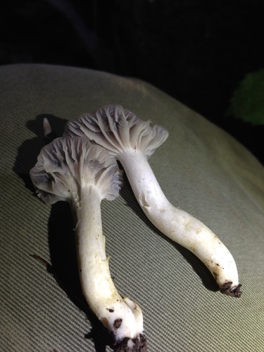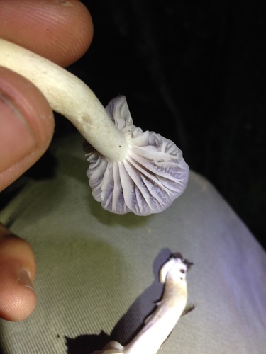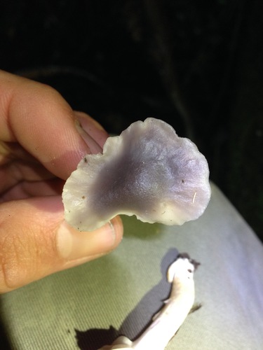 Die Unterseite zeigt Farben von blau/weiß/grau/rosa. Sie sind herablaufend, angewachsen.