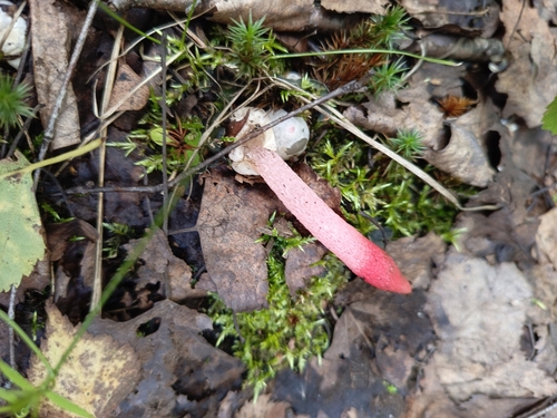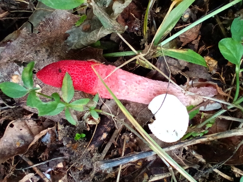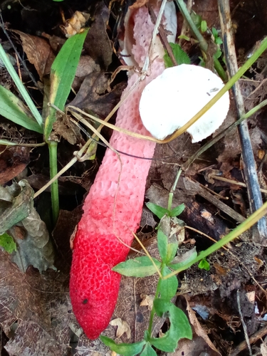Der Himbeerrote Hundsrute (Mutinus ravenelii) ist ein Pilz mit dem Speisewert ungenießbar. Die Hauptsaison erstreckt sich von Juni bis November. Er wächst bevorzugt auf Boden.