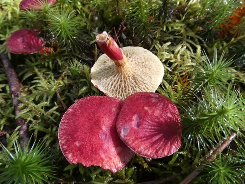Der 2–8 cm breite Hut ist rot-gelb gefärbt. Die Form ist meist andere, kegelförmig, schirmförmig.