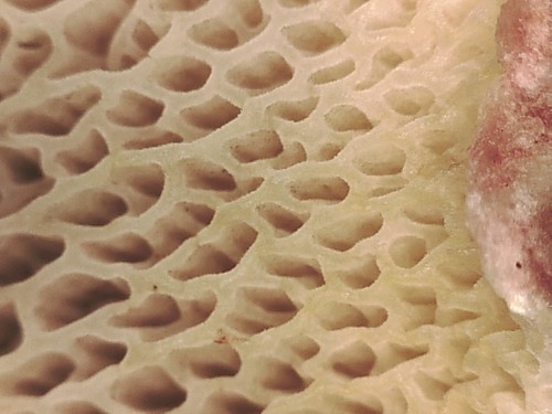 Die Unterseite zeigt Farben von gelb/braun/orange/grün. Sie sind angewachsen, herablaufend.