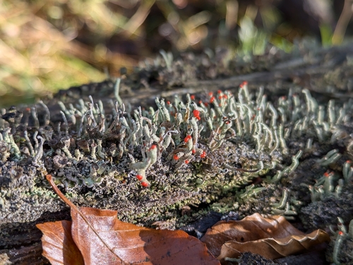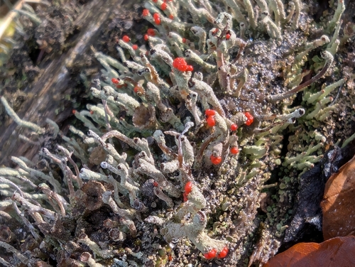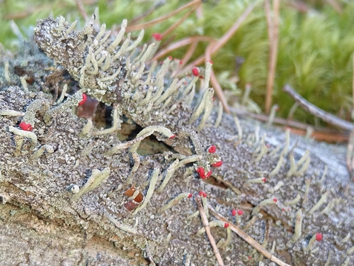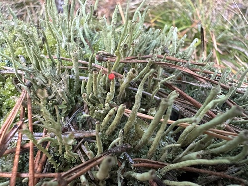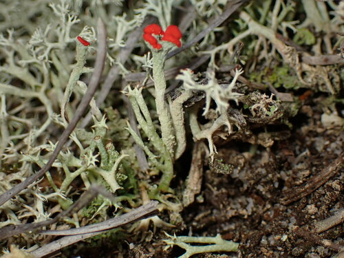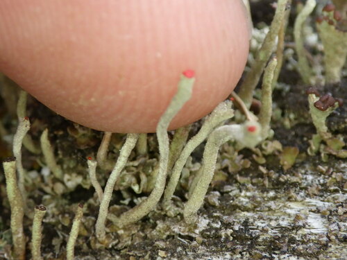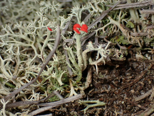 Der Rotfrüchtige Säulenflechte (Cladonia macilenta) ist ein Pilz mit dem Speisewert ungenießbar. Die Hauptsaison erstreckt sich von Januar bis Dezember. Er wächst bevorzugt auf Boden, Holz.