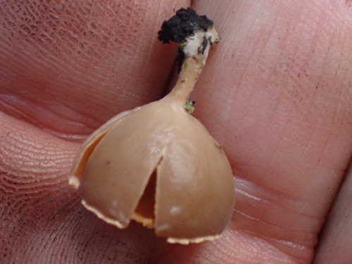 Der Stiel ist braun-orange. Besondere Merkmale: brüchig, flocken, Wurzelbasis.