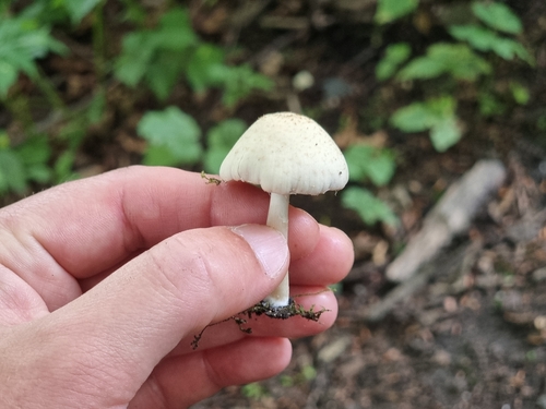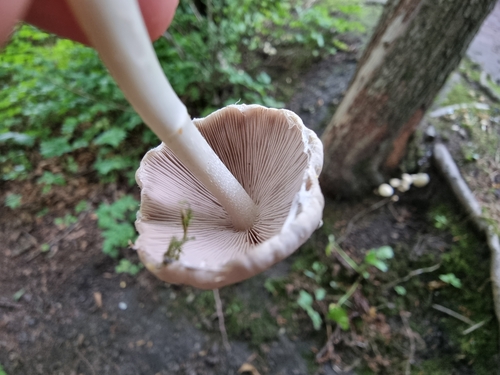 Der Stiel ist weiß. Besondere Merkmale: faserig, brüchig, flocken, hohl, Wurzelbasis.