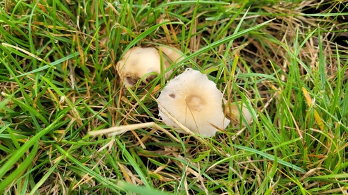 Der 2–13 cm breite Hut ist weiß-braun-orange gefärbt. Die Form ist meist schirmförmig, andere, kegelförmig, geriefter Hut. Er ist hygrophan (Die Hutfarbe ändert sich bei Feuchtigkeit).