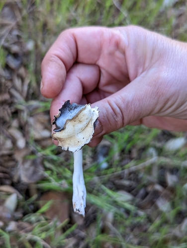 Der 2–5 cm breite Hut ist braun-grau gefärbt. Die Form ist meist andere, kegelförmig, schirmförmig.