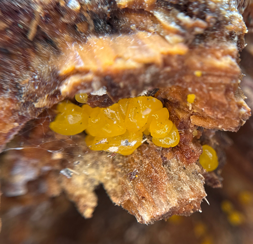 Der Riesen-Gallertträne (Dacrymyces chrysospermus) ist ein Pilz mit dem Speisewert ungenießbar. Die Hauptsaison erstreckt sich von Januar bis Dezember. Er wächst bevorzugt auf Holz.