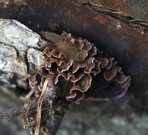 Der Violetter Knorpelschichtpilz (Chondrostereum purpureum) ist ein Pilz mit dem Speisewert ungenießbar. Die Hauptsaison erstreckt sich von Oktober bis März. Er wächst bevorzugt auf Holz.