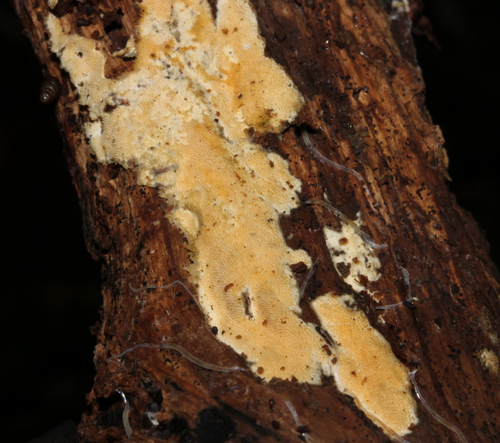 Der Ockerrötlicher Resupinatstacheling (Steccherinum ochraceum) ist ein Pilz mit dem Speisewert ungenießbar. Die Hauptsaison erstreckt sich von Januar bis Dezember. Er wächst bevorzugt auf Holz.