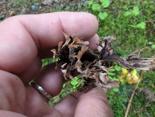 Der Stinkende Lederkoralle (Thelephora palmata) ist ein Pilz mit dem Speisewert ungenießbar. Die Hauptsaison erstreckt sich von Juni bis November. Er wächst bevorzugt auf Boden.