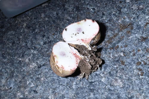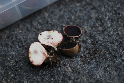 Er hat einen fauligen Geruch. Er hat einen milden Geschmack. Das Sporenpulver ist braun, schwarz, rot.