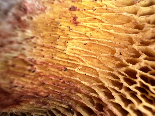 Die Unterseite zeigt Farben von gelb/braun/rot/grün. Sie sind angewachsen.