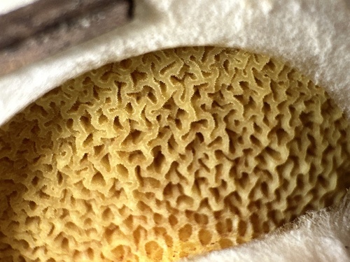 Er hat einen milden Geschmack. Das Sporenpulver ist gelb.