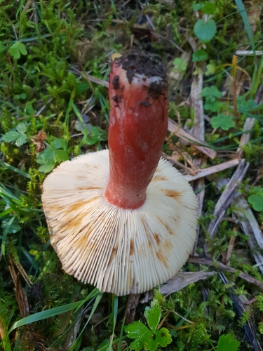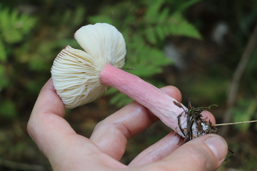 Der Stiel ist rot-weiß-rosa. Besondere Merkmale: brüchig, hohl.