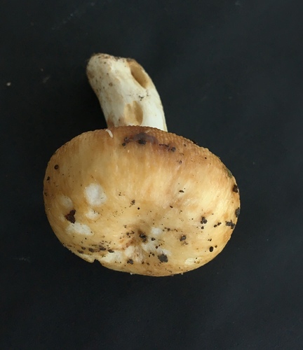 Die Unterseite zeigt Farben von weiß/gelb/braun. Sie sind angewachsen.