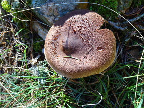 Der 3–15 cm breite Hut ist braun-orange gefärbt. Die Form ist meist andere, kegelförmig. Er ist hygrophan (Die Hutfarbe ändert sich bei Feuchtigkeit).