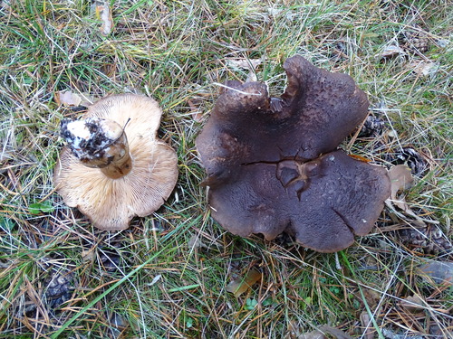 Die Unterseite zeigt Farben von braun/weiß/gelb. Sie sind angewachsen.
