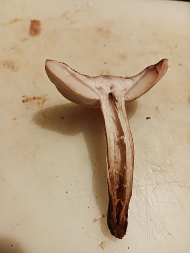 Der Stiel ist weiß-braun-orange. Besondere Merkmale: faserig, genattert.