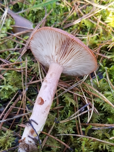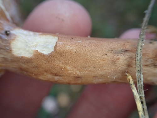 Der Stiel ist braun-rot-orange-weiß. Besondere Merkmale: brüchig, hohl, genattert.