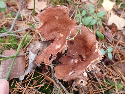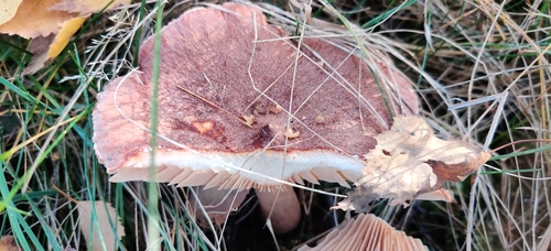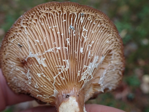 Die Unterseite zeigt Farben von braun/orange/rot. Sie sind angewachsen, herablaufend.