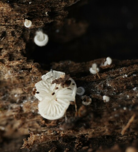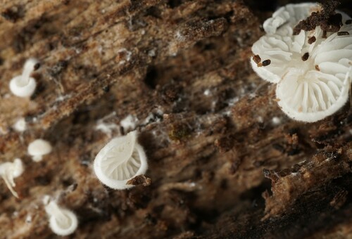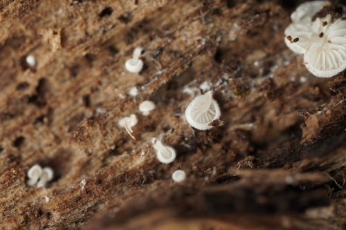 Der Weißer Zwergschwindling (Marasmiellus candidus) ist ein Pilz mit dem Speisewert ungenießbar. Die Hauptsaison erstreckt sich von Juni bis November. Er wächst bevorzugt auf Holz.