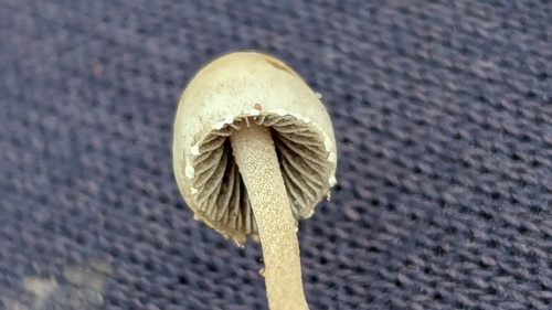 Der 1–4 cm breite Hut ist grau-braun-orange gefärbt. Die Form ist meist andere, schirmförmig, kegelförmig. Er ist hygrophan (Die Hutfarbe ändert sich bei Feuchtigkeit).