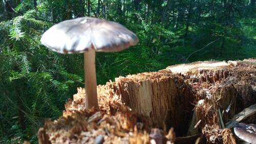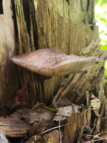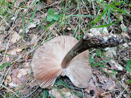 Der Stiel ist braun-orange-weiß. Besondere Merkmale: flocken, faserig, brüchig, Wurzelbasis.