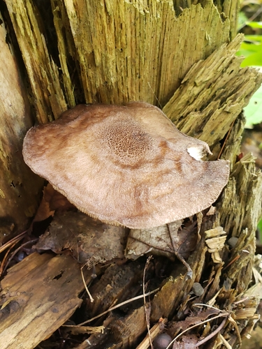 Der 4–20 cm breite Hut ist braun gefärbt. Die Form ist meist schirmförmig, kegelförmig, andere, geriefter Hut.