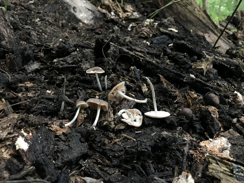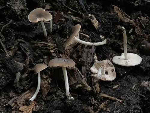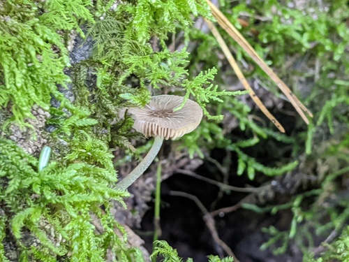 Der 1–7 cm breite Hut ist braun gefärbt. Die Form ist meist andere, schirmförmig, kegelförmig, geriefter Hut.