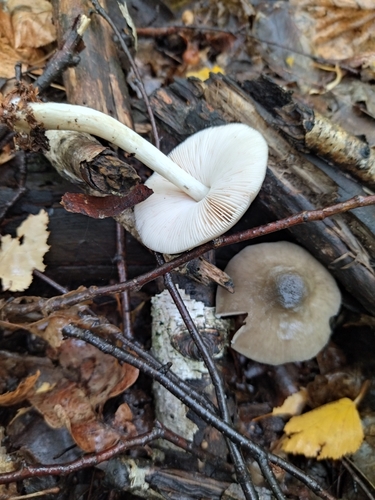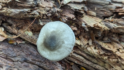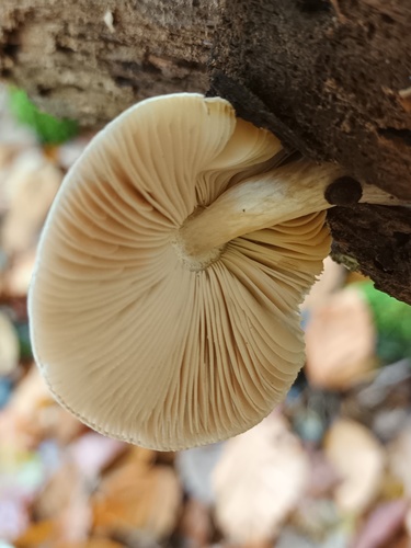 Der 4–11 cm breite Hut ist grau-weiß-braun-orange-grün gefärbt. Die Form ist meist schirmförmig, andere, kegelförmig, geriefter Hut. Er ist hygrophan (Die Hutfarbe ändert sich bei Feuchtigkeit).