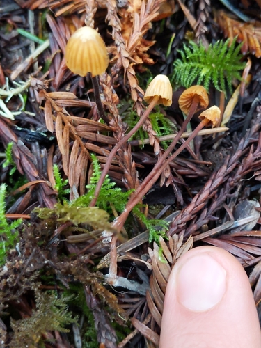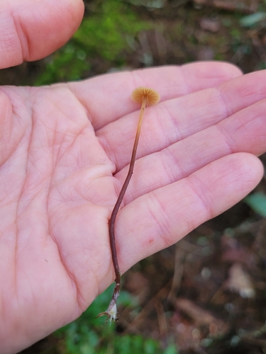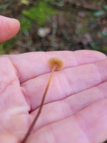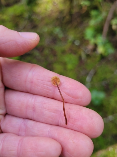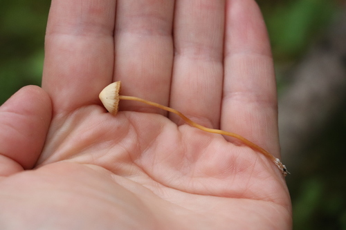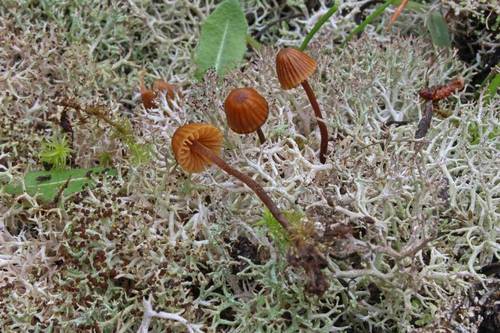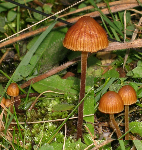 Der 1–4 cm breite Hut ist braun-orange-gelb gefärbt. Die Form ist meist kegelförmig, geriefter Hut. Er ist hygrophan (Die Hutfarbe ändert sich bei Feuchtigkeit).