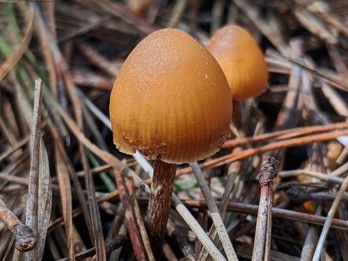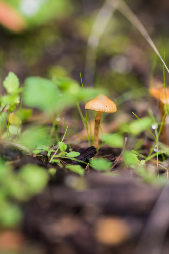 Der 1–4 cm breite Hut ist braun-orange-rot-gelb gefärbt. Die Form ist meist kegelförmig, andere. Er ist hygrophan (Die Hutfarbe ändert sich bei Feuchtigkeit).
