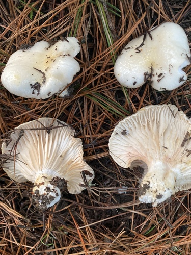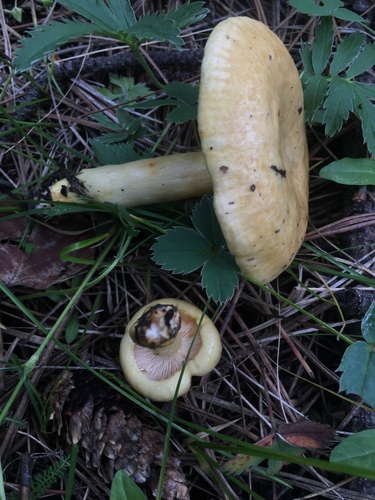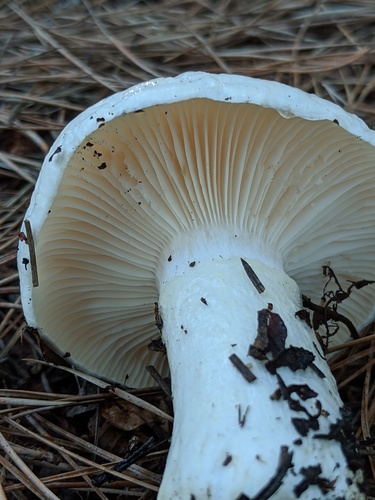 Die Unterseite zeigt Farben von weiß/gelb. Sie sind angewachsen, herablaufend.