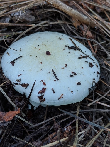 Der 3–9 cm breite Hut ist weiß-gelb-orange gefärbt. Die Form ist meist andere, trichterförmig. Er ist hygrophan (Die Hutfarbe ändert sich bei Feuchtigkeit).