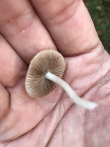 Der 1–6 cm breite Hut ist braun-weiß-grau-orange-gelb gefärbt. Die Form ist meist kegelförmig, schirmförmig, andere, geriefter Hut. Er ist hygrophan (Die Hutfarbe ändert sich bei Feuchtigkeit).