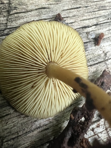Der Stiel ist gelb-orange-braun. Besondere Merkmale: faserig, Wurzelbasis, hohl.