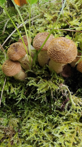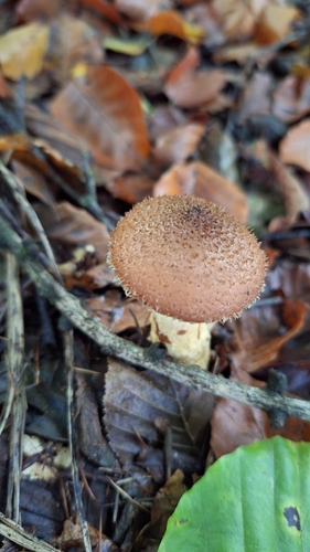 Der Stiel ist braun-orange-weiß. Besondere Merkmale: faserig, Ring, knollige Basis.