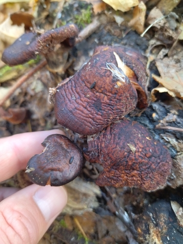 Die Unterseite zeigt Farben von braun/weiß/orange. Sie sind angewachsen.