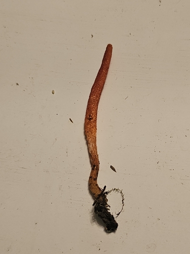 Der Stiel ist rot-gelb-orange. Besondere Merkmale: Wurzelbasis.