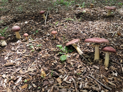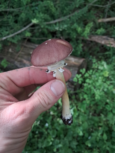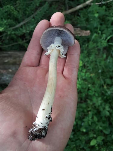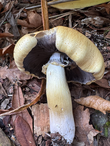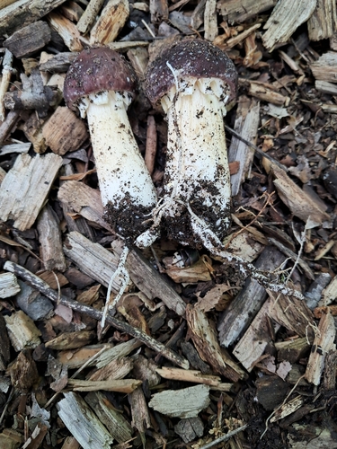 Der Stiel ist braun-weiß-gelb-orange. Besondere Merkmale: Ring, hohl, Wurzelbasis, faserig.