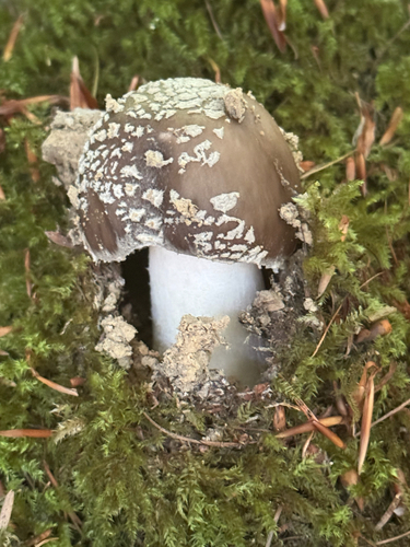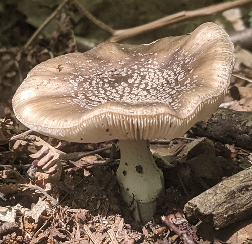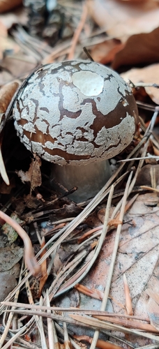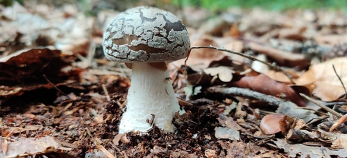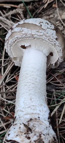 Der Stiel ist weiß-braun-grau. Besondere Merkmale: knollige Basis, faserig, flocken, Ring, Wurzelbasis, genattert.