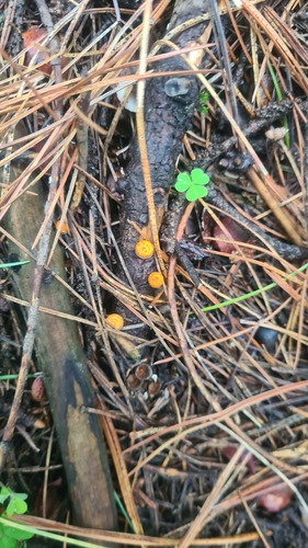 Der 1–2 cm breite Hut ist braun-orange-gelb-rot gefärbt. Die Form ist meist trichterförmig.