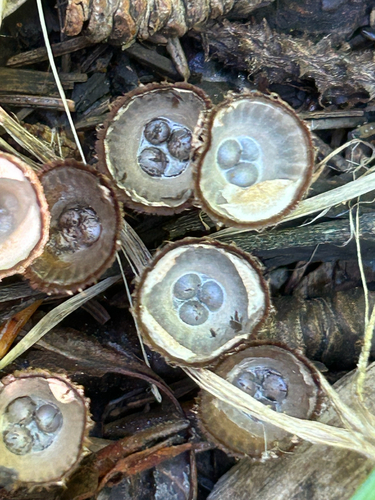 Der Gestreifter Teuerling (Cyathus striatus) ist ein Pilz mit dem Speisewert ungenießbar. Die Hauptsaison erstreckt sich von Juni bis November. Er wächst bevorzugt auf Holz, Boden.
