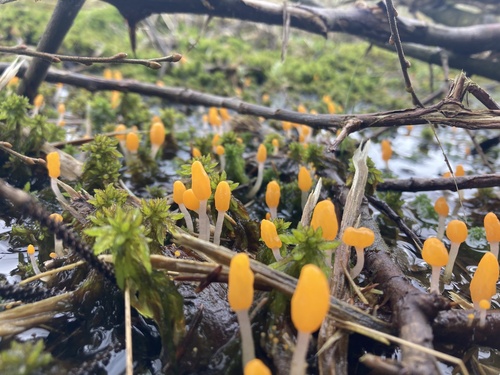 Der Sumpf-Haubenpilz (Mitrula paludosa) ist ein Pilz mit dem Speisewert ungenießbar. Die Hauptsaison erstreckt sich von März bis Juni. Er wächst bevorzugt auf Holz, Boden.